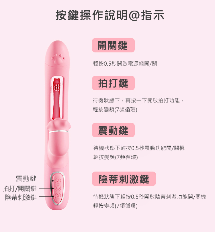 一棒多用,三點齊爽(會拍、會扣、會震)柔軟觸感,仿真入體,四面彈力,Q彈入體真實飽滿。
