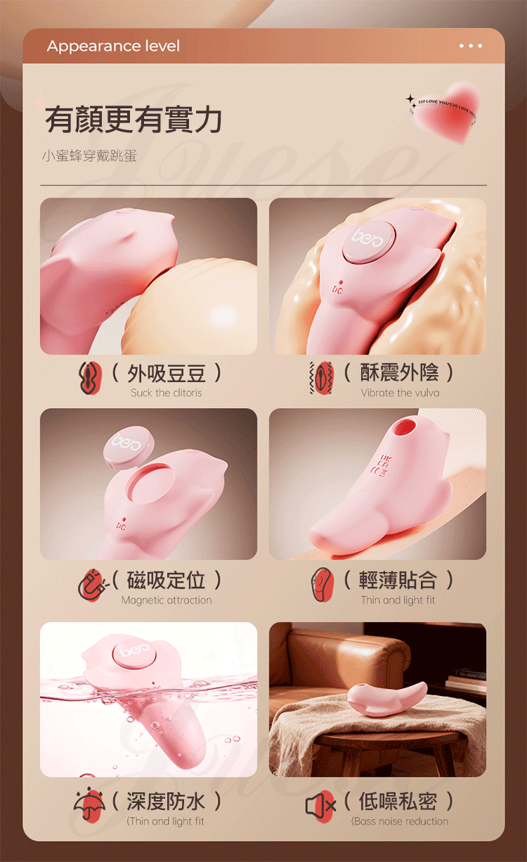 精準含豆,外因全覆蓋,從輕柔到強烈,精準刺激敏感點,帶來包裹快感。