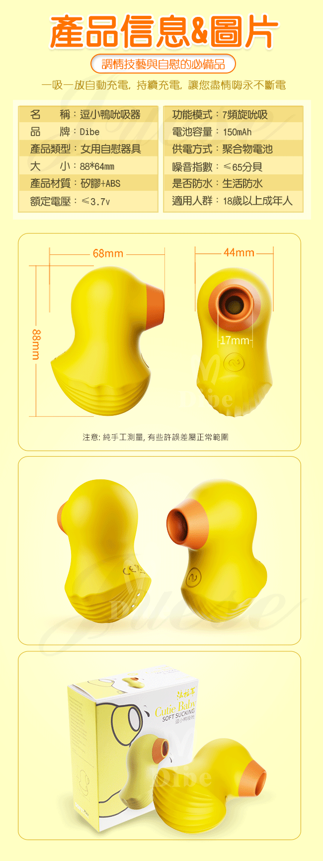 首頁 > 亞太日本情趣品牌 > Dibe > Dibe-逗小鴨 7段變頻吮吸矽膠震動器(特)