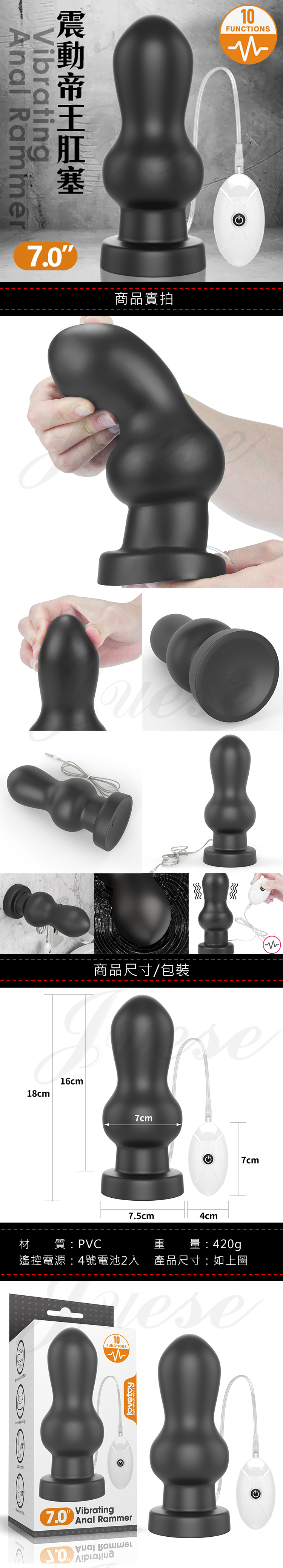 首頁 > 猛男激爆專區 > 前列腺刺激器 > Anal Rammer 3速7頻震動帝王肛塞-7吋(特)