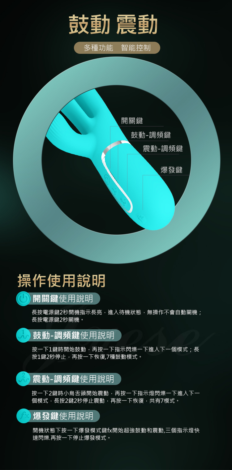 啟動按摩棒後,只需輕輕一按爆發鍵,瞬間開啟最強動力,瞬間助推快樂。