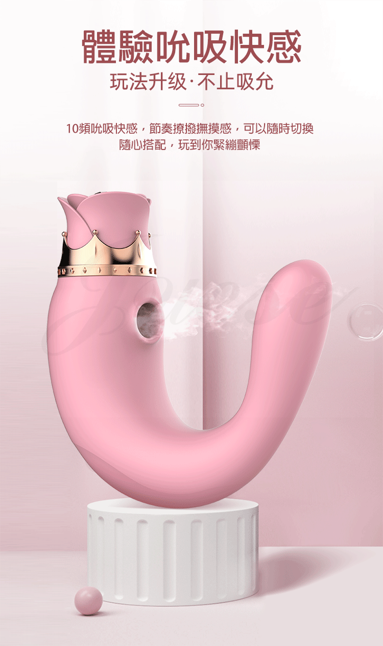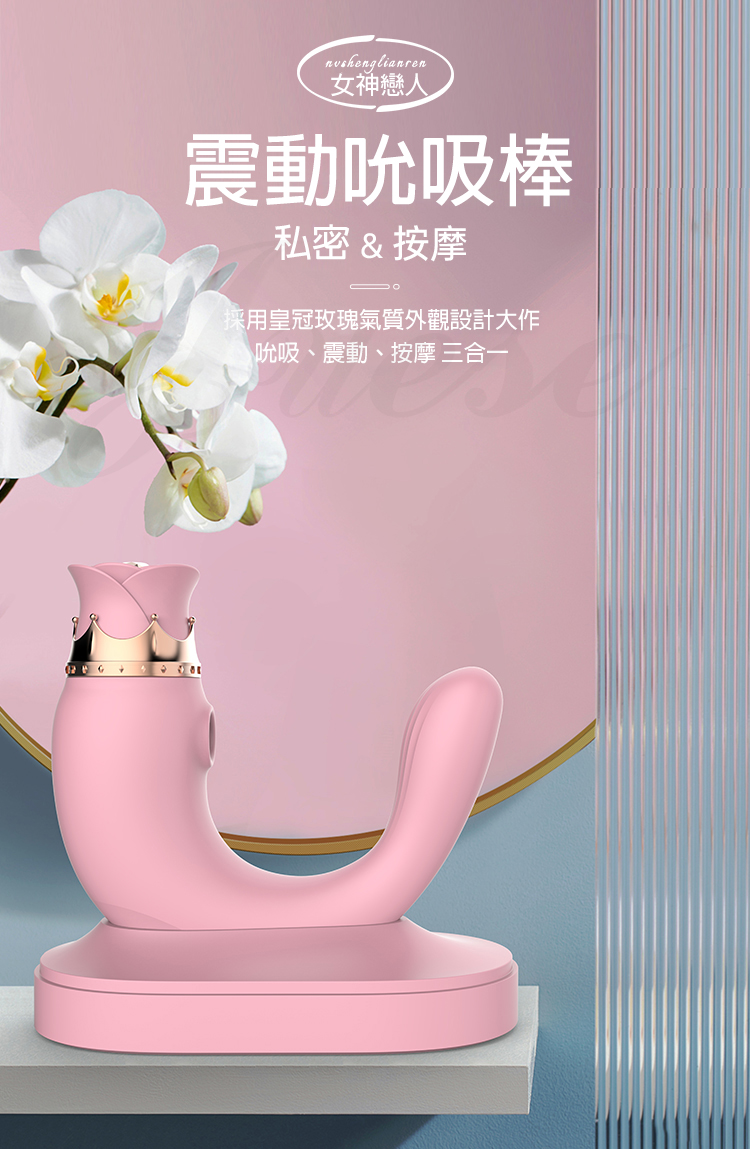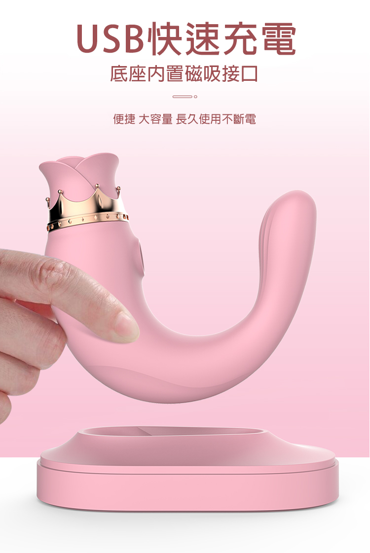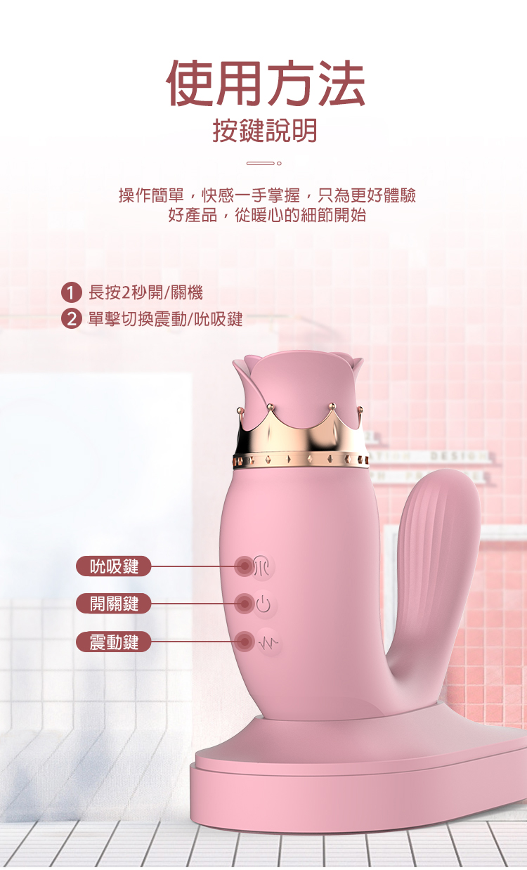 採用皇冠玫瑰氣質外觀設計大作,吮吸、震動、按摩 三合一。