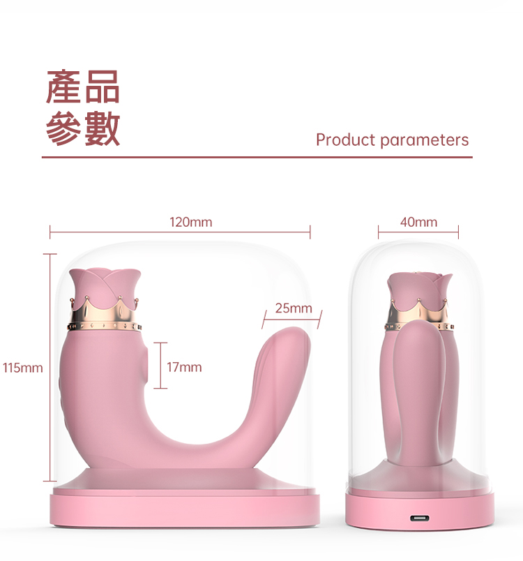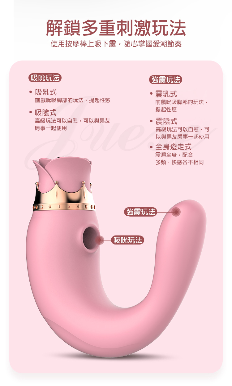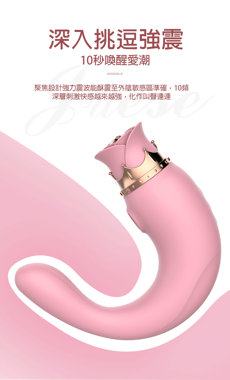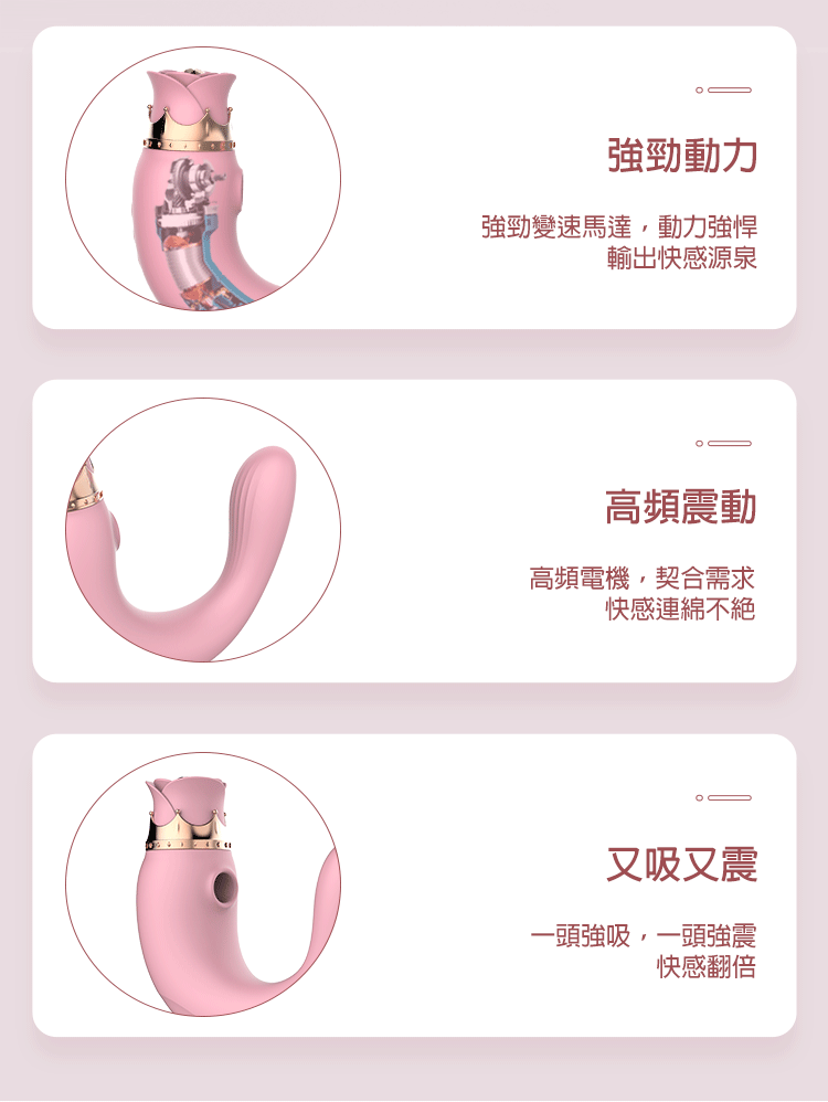 採用皇冠玫瑰氣質外觀設計大作,吮吸、震動、按摩 三合一。