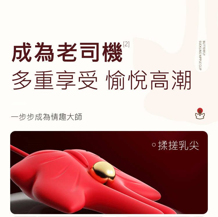 蝴蝶吮吸乳夾,揉震雙峰妙不可言,潛入一場前戲的盛宴。成為老司機,多重享受愉悅高潮,一步步成為情趣大師。