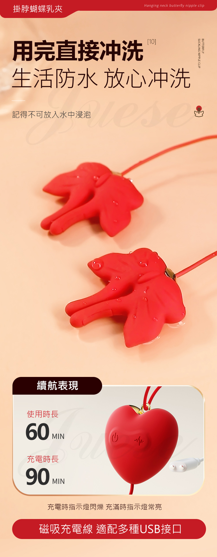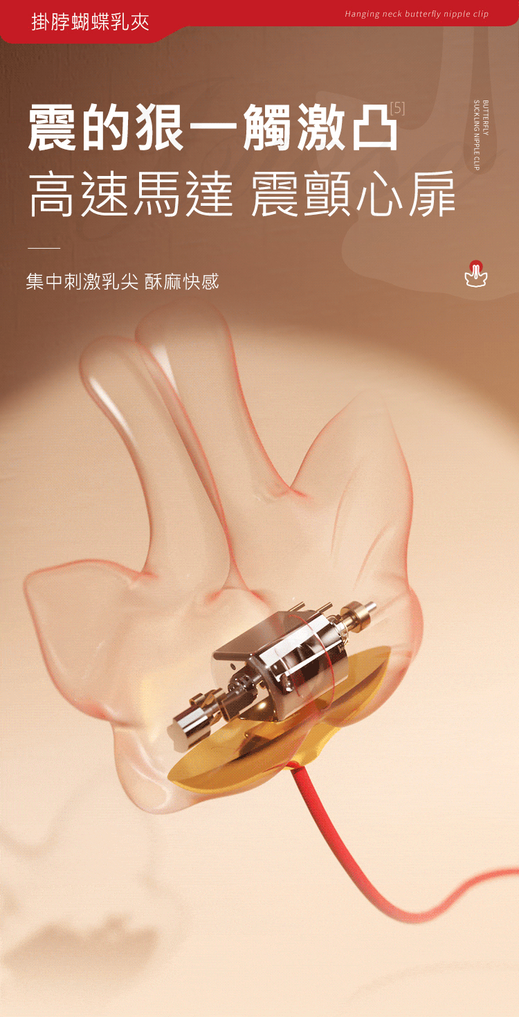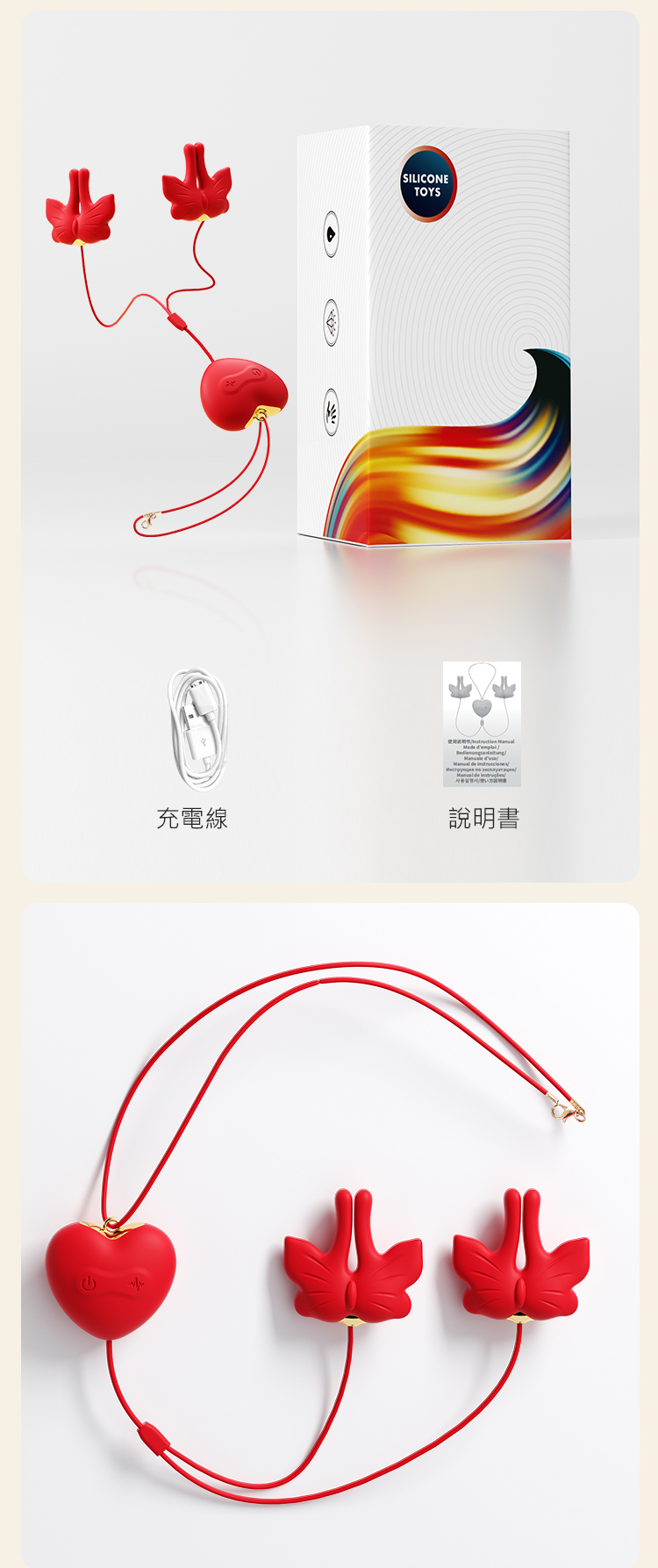掛脖造型設計,狂甩不掉穩穩夾震,不限胸型花式玩法,模擬揉搓乳尖,彷彿指尖高頻撩撥。