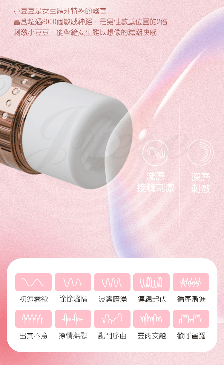 小豆豆是女生體外特殊的器官,富含超過8000個敏感神經,是男性敏感位置的2倍,刺激小豆豆,能帶給女生難以想像的糕潮快感。