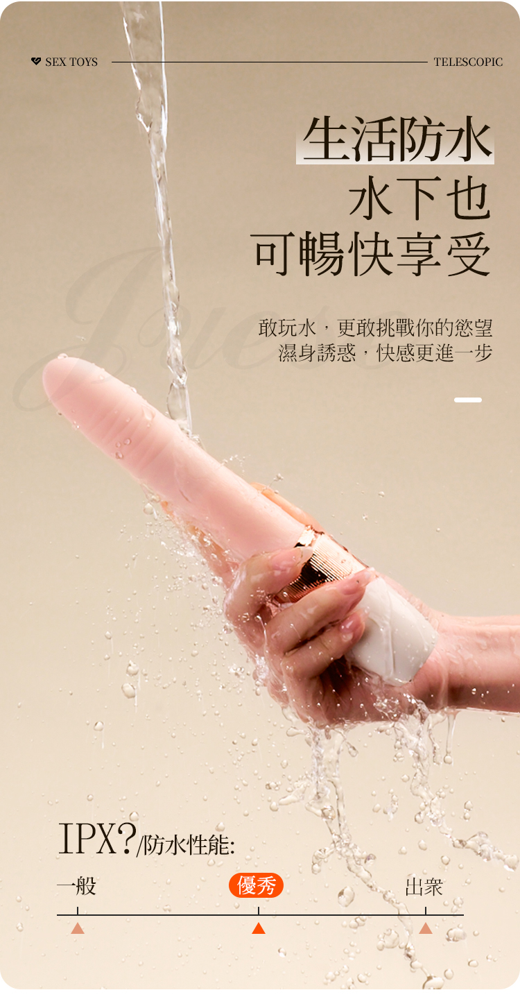 靈動伸縮&契合你的每一次悸動,敢玩水,更敢挑戰你的慾望,濕身誘惑,快感更進一步。