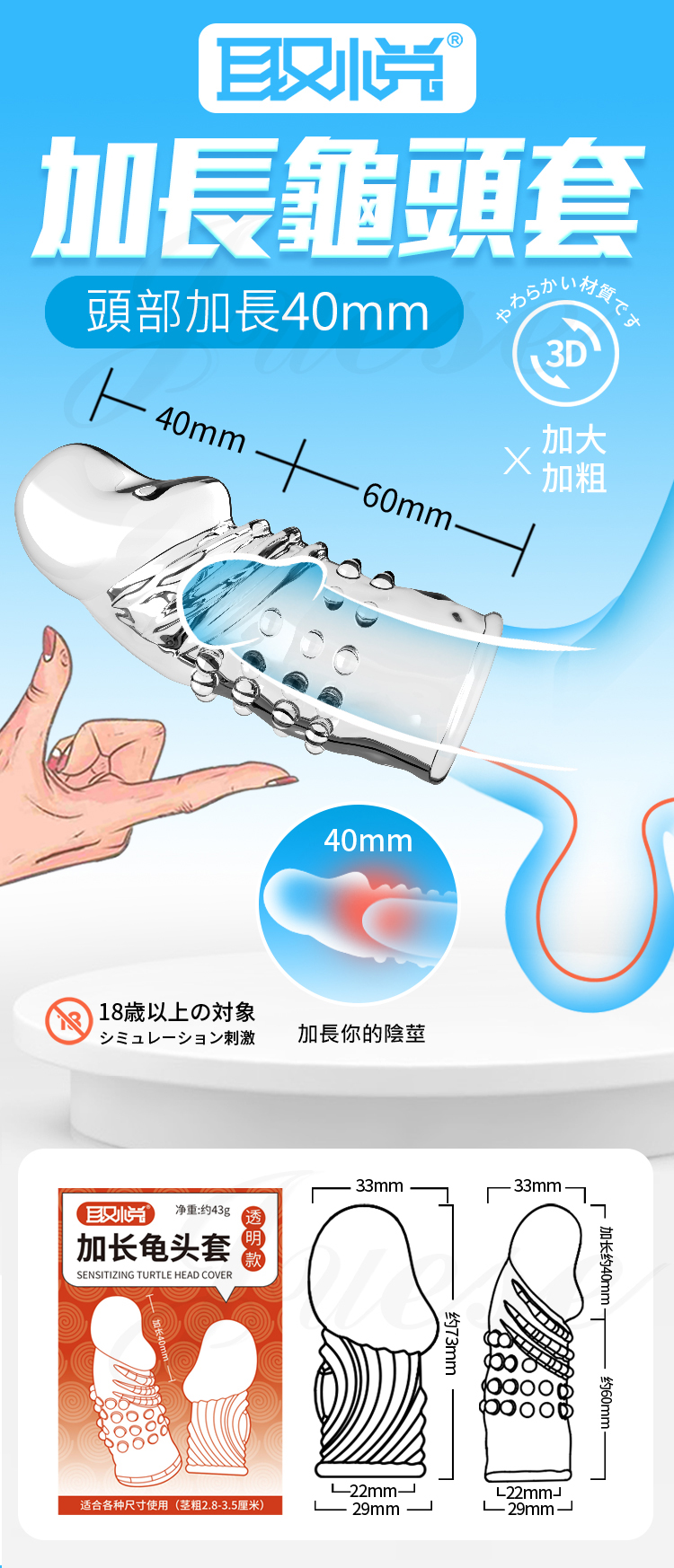 首頁 > 猛男堅挺套環區 > 加長/粗專用套 > 加長龜頭套-透明款2只(特)