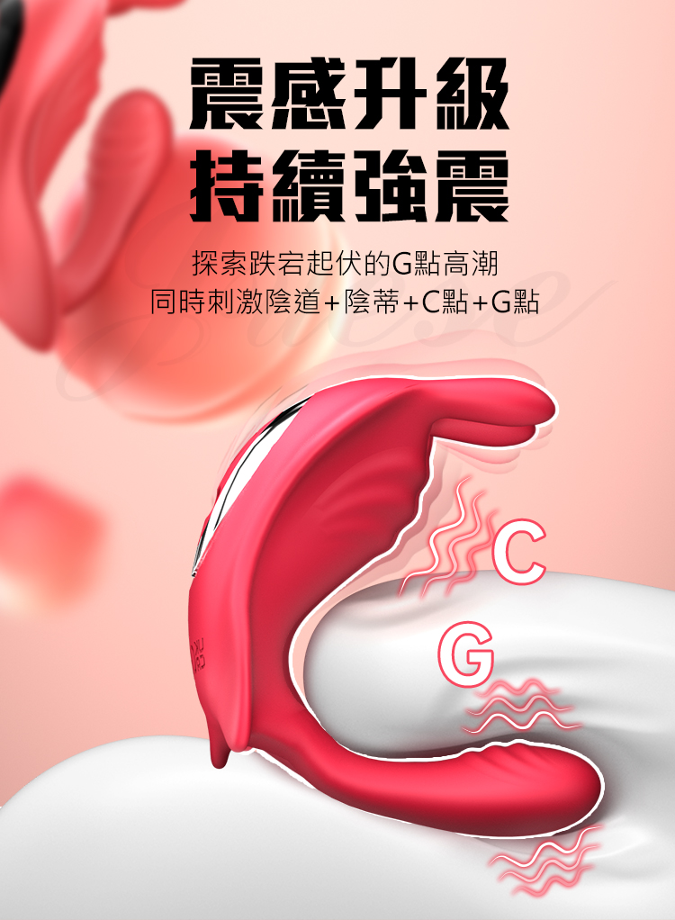 震感升級,持續強震,探索跌宕起伏的G點高潮,同時刺激陰道+陰蒂+c點+g點。
