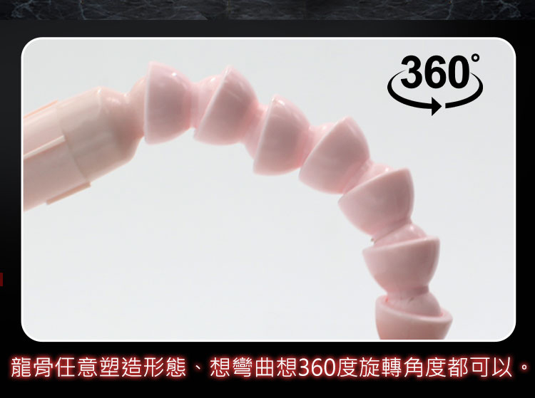 萬向龍骨由每顆堅實的骨節組合而成,可依喜好或姿勢自由調整形狀。角度任意彎曲,可調式你任意想到的位置。