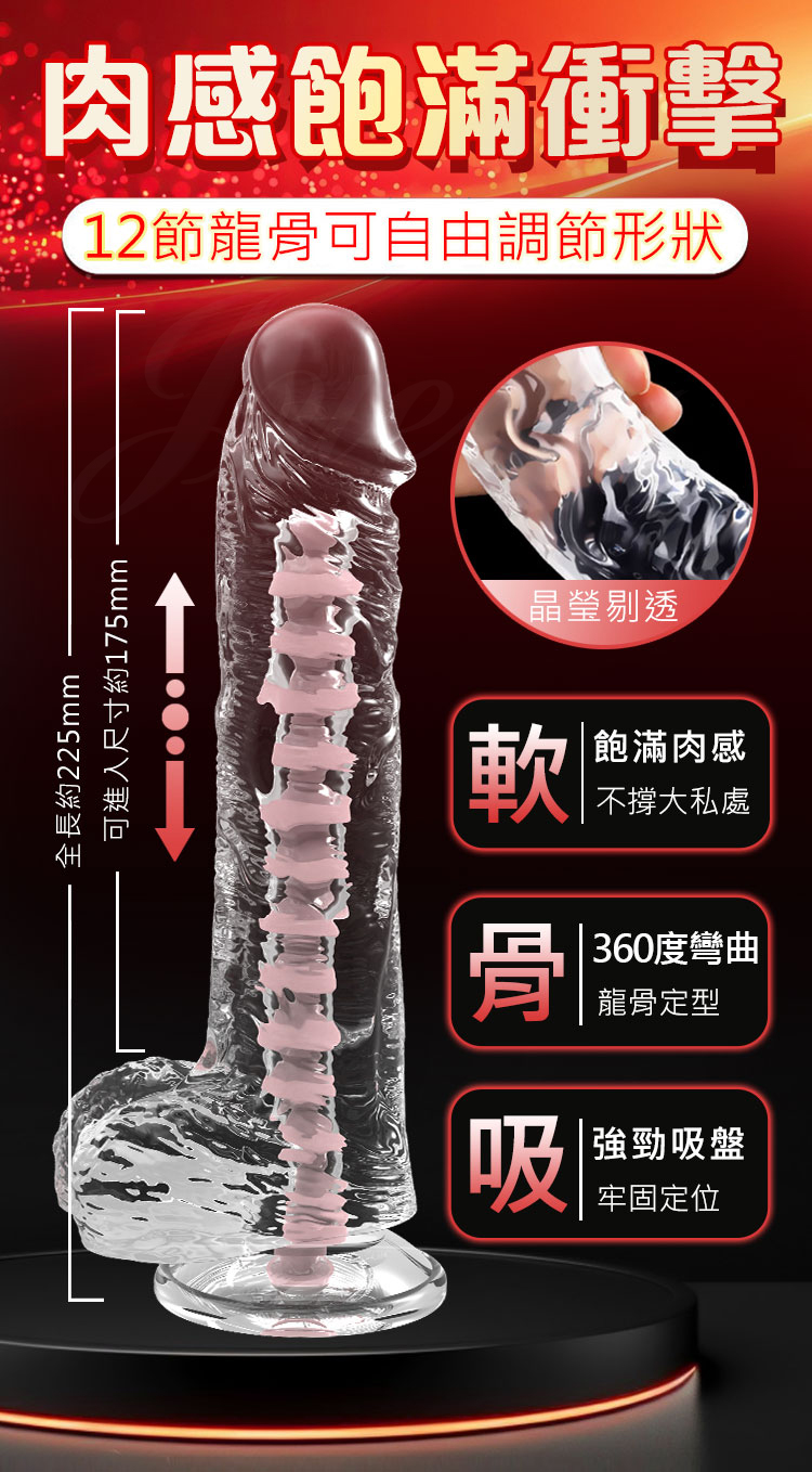 龍骨任意塑造形態、想彎曲想360度旋轉角度都可以。粗大凸起青筋,強力大吸盤,可強力吸附在光滑表面。