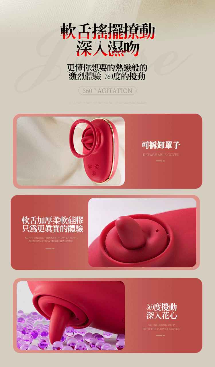 軟舌搖擺撩動,深入濕吻,更懂你想要的熱戀般的激烈體驗360度的攪動,軟舌加厚柔軟硅膠只為更真實的體驗。