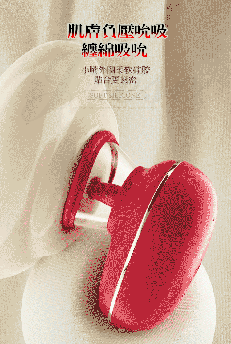 肌膚負壓吮吸,纏綿吸吮,小嘴外圈柔軟硅膠,貼合更緊密。