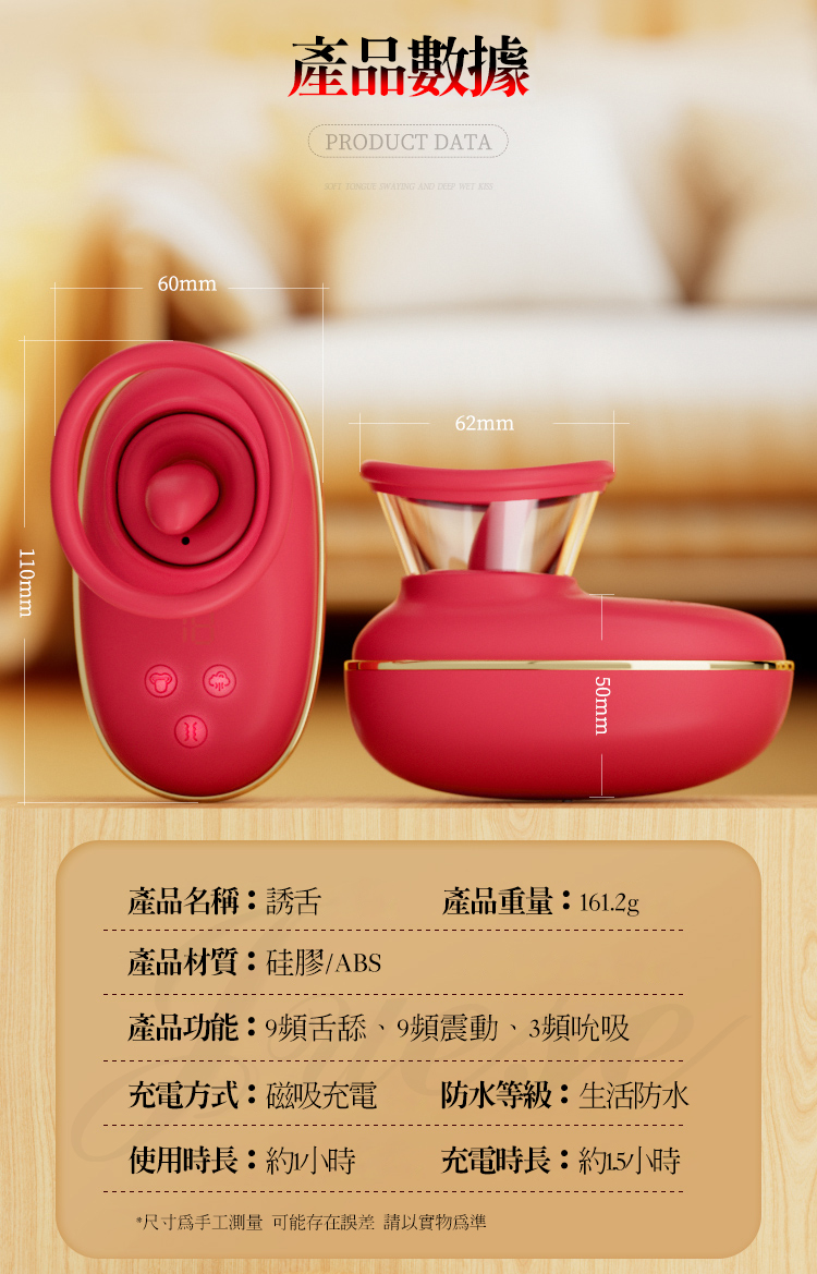 .規格:9段震動、9頻舌舔、3頻吮吸。