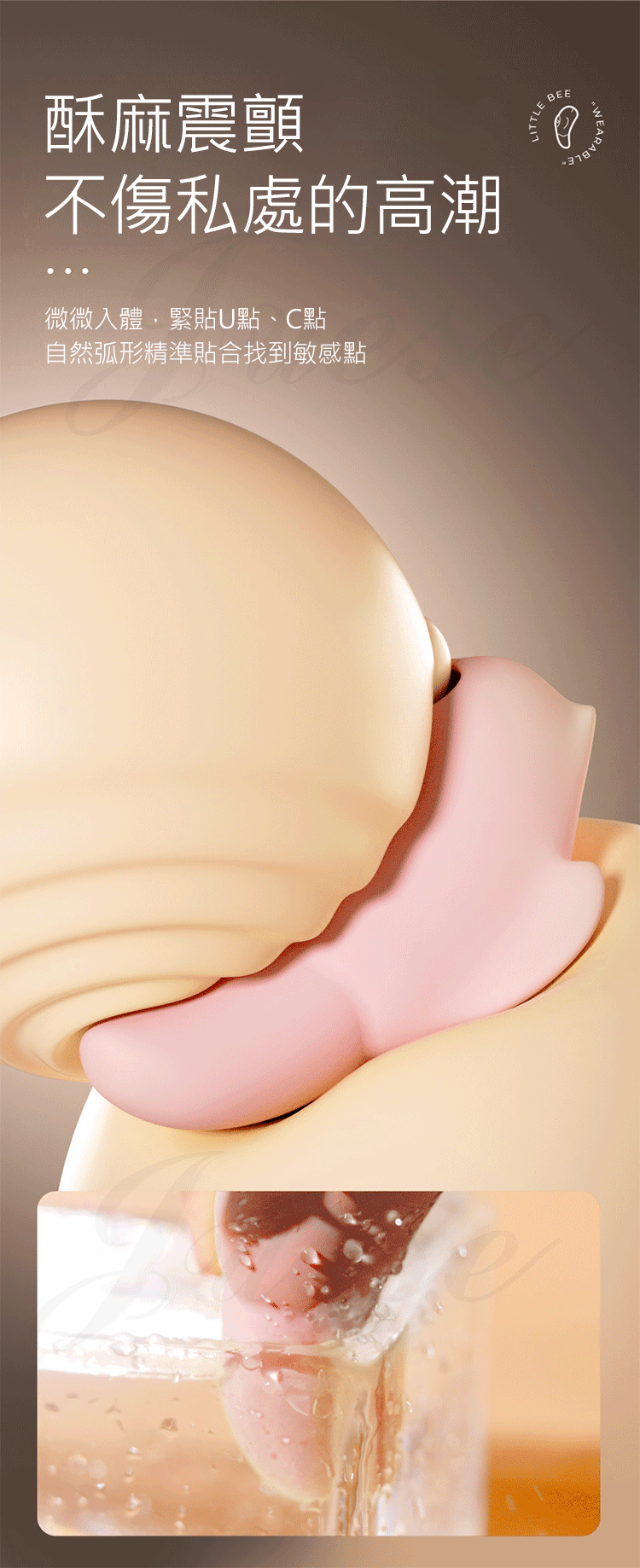 酥麻震顫,不傷私處的高潮,微微入體,緊貼U點、C點,自然弧形精準貼合找到敏感點。