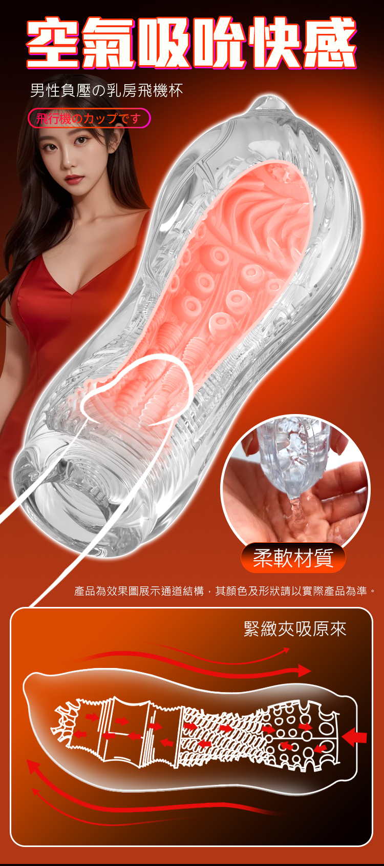 {空}氣負壓,包裹夾吸,男生的敏感區主要集中在頂端位置,內包裹結構可以更好的刺激頂部。